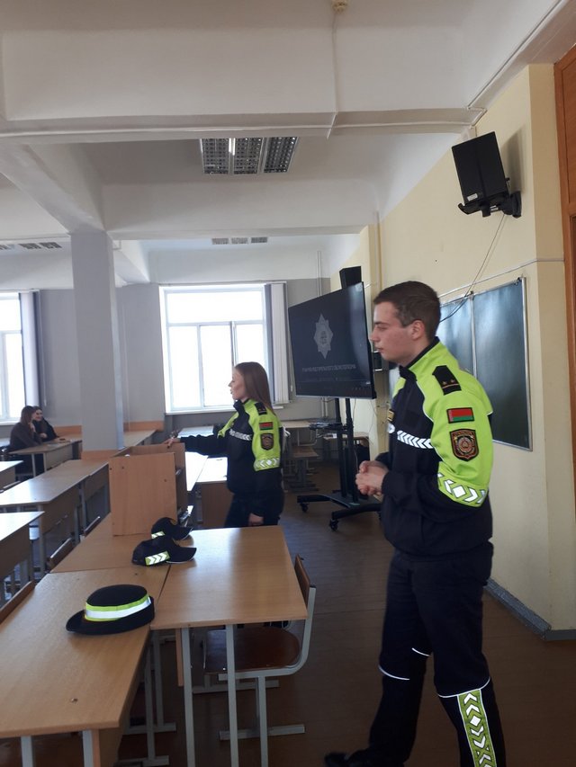 27 марта 2026 года состоялась встреча профориентационной направленности со студентами 3 курса специальности «Правоведение» (ауд.2-22) и специальности «Экономическое право» (ауд.4-16) с представителями ГАИ УВД Гомоблисполкома. Инспектора группы кадров межрайонного отдела Савченко Ксения, Громыко Зинаида и ВРИОД старшего инспектора группы кадров Холявкин Антон рассказали студентам о престиже службы в Государственной автомобильной инспекции, условиях работы, социальных гарантиях, требованиях, предъявляемых к кандидатам. Студенты юридического факультета, способные соблюдать дисциплину, выполнять поставленные задачи, желающие охранять правопорядок и помогать людям, после получения диплома имеют реальную возможность поступить на службу в ГАИ.