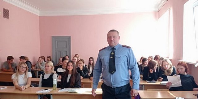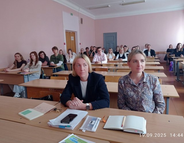 19 сентября 2025 года состоялась встреча студентов 3 и 4 курса юридического факультета с заместителем начальника отдела по идеологической работе и кадровому обеспечению Светлогорского отдела Департамента охраны МВД Республики Беларусь майором милиции Болоховым Виталием Владимировичем. Выпускник юридического факультета 2014 года Виталий Владимирович рассказал студентам выпускного курса о своём профессиональном становлении и пригласил на работу в подразделения Департамента охраны, где, по, его словам, условия службы отвечают высоким запросам молодых специалистов, в плане карьерного роста и решения ряда социальных проблем.