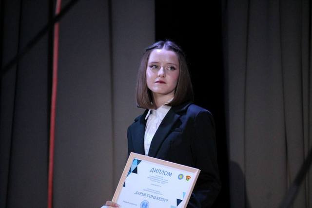 Юридический факультет поздравляет Дарью Синькевич (группа П-31) с достойным выступлением на университетском этапе Республиканского конкурса «Студент года – 2025» и выражает благодарность команде, поддержавшей и оказавшей реальную помощь в подготовке и блестящем сопровождении программы конкурса. Наша конкурсантка с честью прошла все три испытания: интеллектуальный конкурс, конкурс видеороликов и творческий номер, и по итогу удостоена диплома участника и специального приза. Даша чистосердечно благодарна организаторам конкурса за предоставленную возможность выйти на главную сцену университета и показать себя и свои таланты, объективному судейству, а также зрительному залу и Студенческому совету юридического факультета за искреннюю тёплую поддержку.