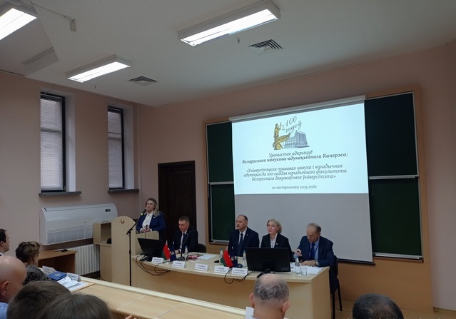 Декан юридического факультета И.И.Эсмантович 20 октября 2025 года приняла участие в Белорусском научно-образовательном конгрессе «Университетская правовая наука и юридическое образование: к 100-летию юридического факультета Белорусского государственного университета». В конгрессе принимали участие ведущие ученые и практики Республики Беларусь и Российской Федерации, студенты, преподаватели и представители профильных организаций из Беларуси, Китая и стран СНГ.
