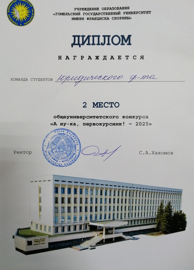 Поздравляем команду студентов юридического факультета, занявшую 2 место на 51-м общеуниверситетском конкурсе «А ну-ка, первокурсник! – 2025». Мероприятие состоялось в минувшие выходные и проходило два конкурсных дня, 25 и 26 октября. Команда наших первокурсников завершала своим выступлением конкурсную программу и, надо отметить, что их позитивная, яркая, динамичная постановка, помноженная на талантливое исполнение каждого участника, сделала незабываемым финал всего проекта. Раскрывая тему «Рождение легенды», ребята зажгли зрительский зал своими яркими талантами, искромётной энергией, молодостью, задором, юмором. Браво!!!