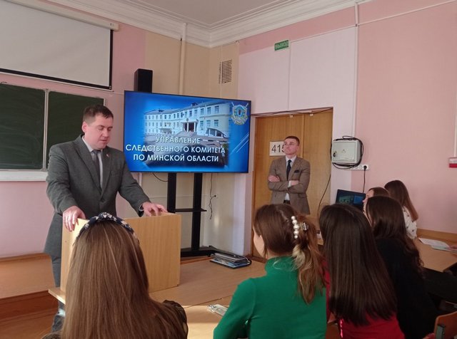 19 ноября 2025 года состоялась встреча студентов 3 курсов юридического факультета с начальником управления кадров и идеологической работы УСК по Минской области Дорогановым Олегом Евгеньевичем и главным инспектором Рекишем Артёмом Андреевичем.