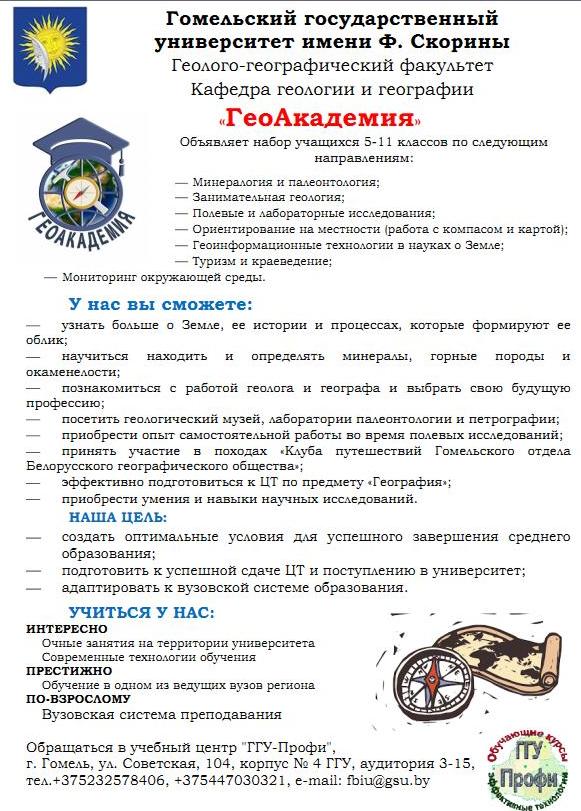 Опубликовано Doroshev в Ср, 10/04/2017 - 16:51Геолого-географический факультет приглашает будущих географов и геологов в ГеоАкадемию. Учиться в академии интересно и престижно.