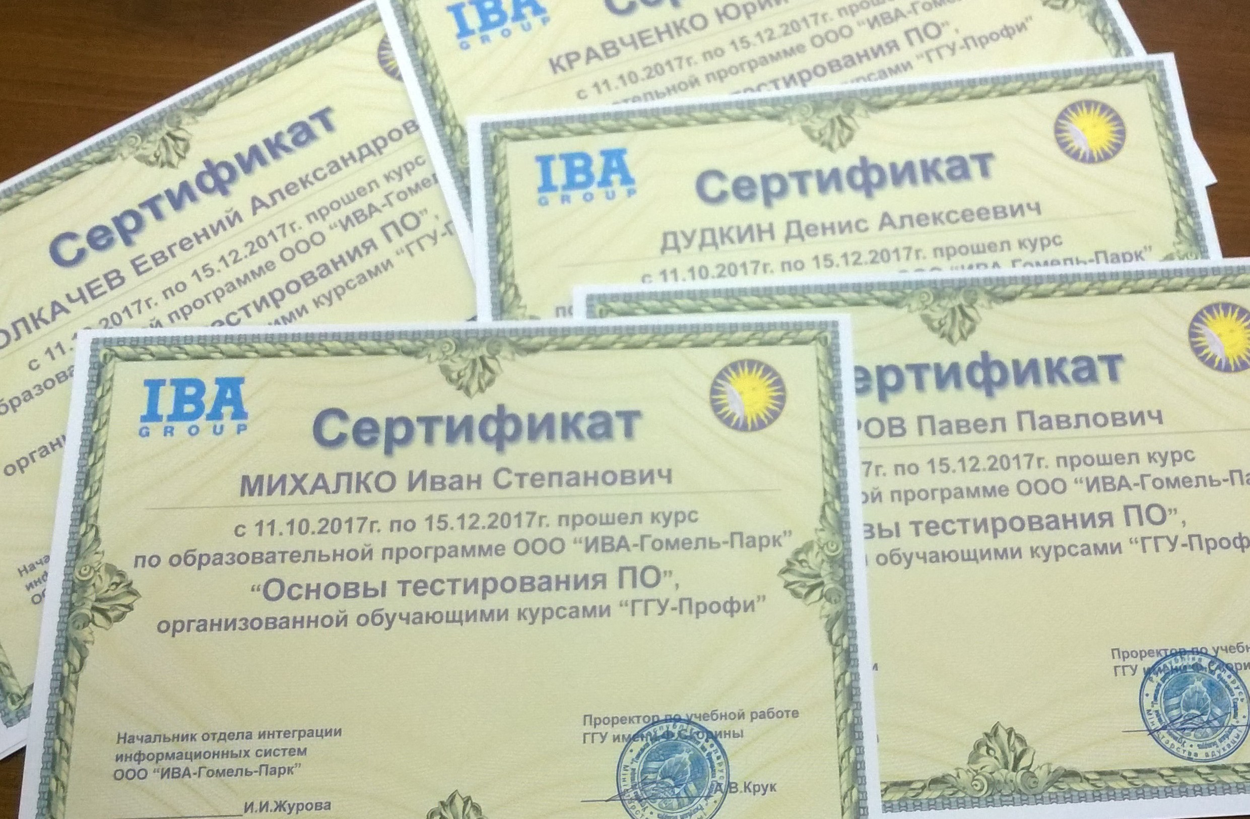 По результатам обучающей программы ООО "ИВА-Гомель-Парк" по основам тестирования программного обеспечения состоялась выдача сертификатов.