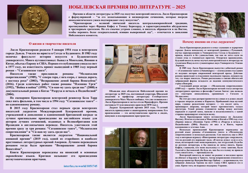 НОБЕЛЕВСКАЯ ПРЕМИЯ – 2025 ПО ЛИТЕРАТУРЕ
